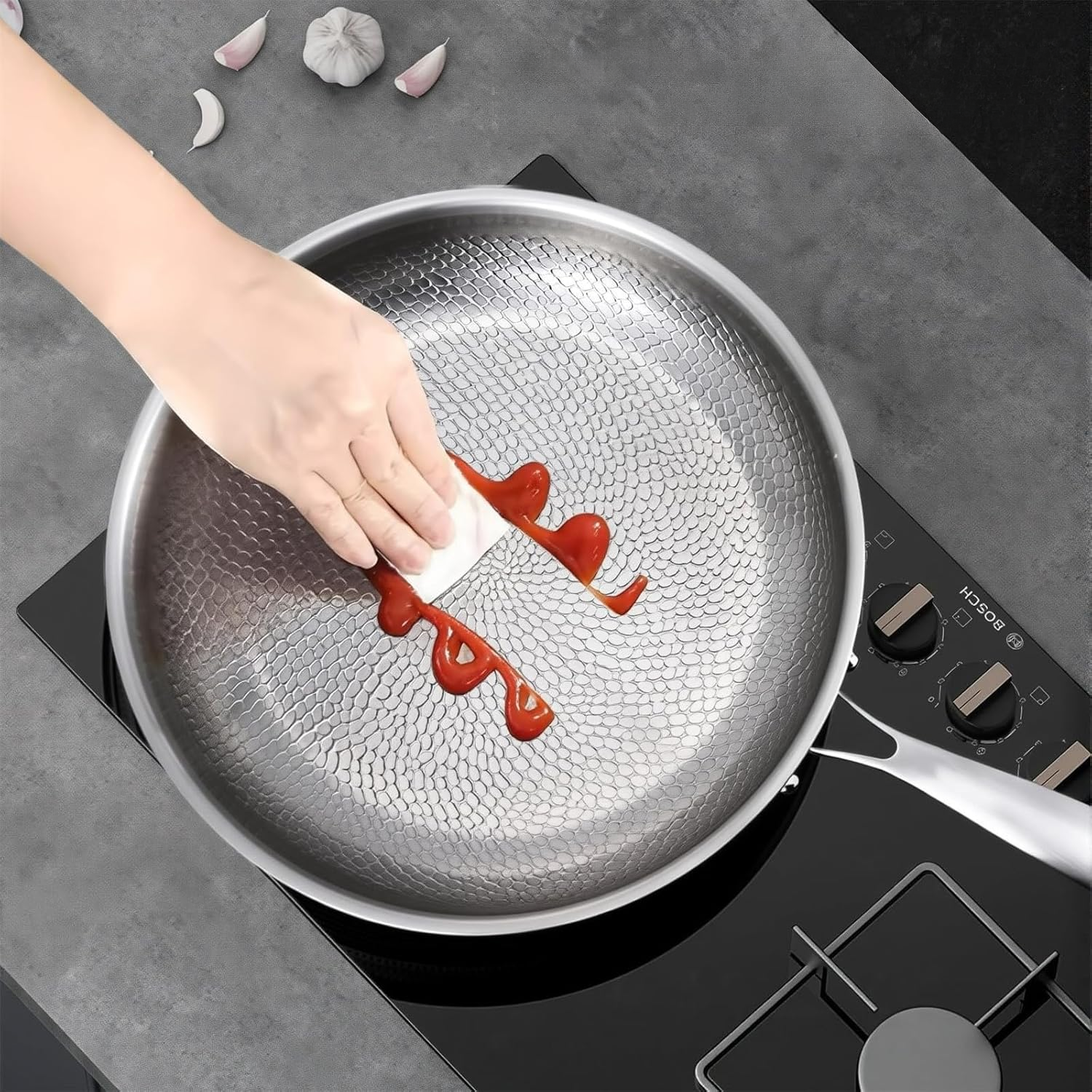 - ✅ Physical Non-Stick: Featuring an exclusive triple physical non-stick barrier, including micro-pore oil locking and a hammered texture process, it maintains lasting non-stick performance without relying on any chemical coatings.